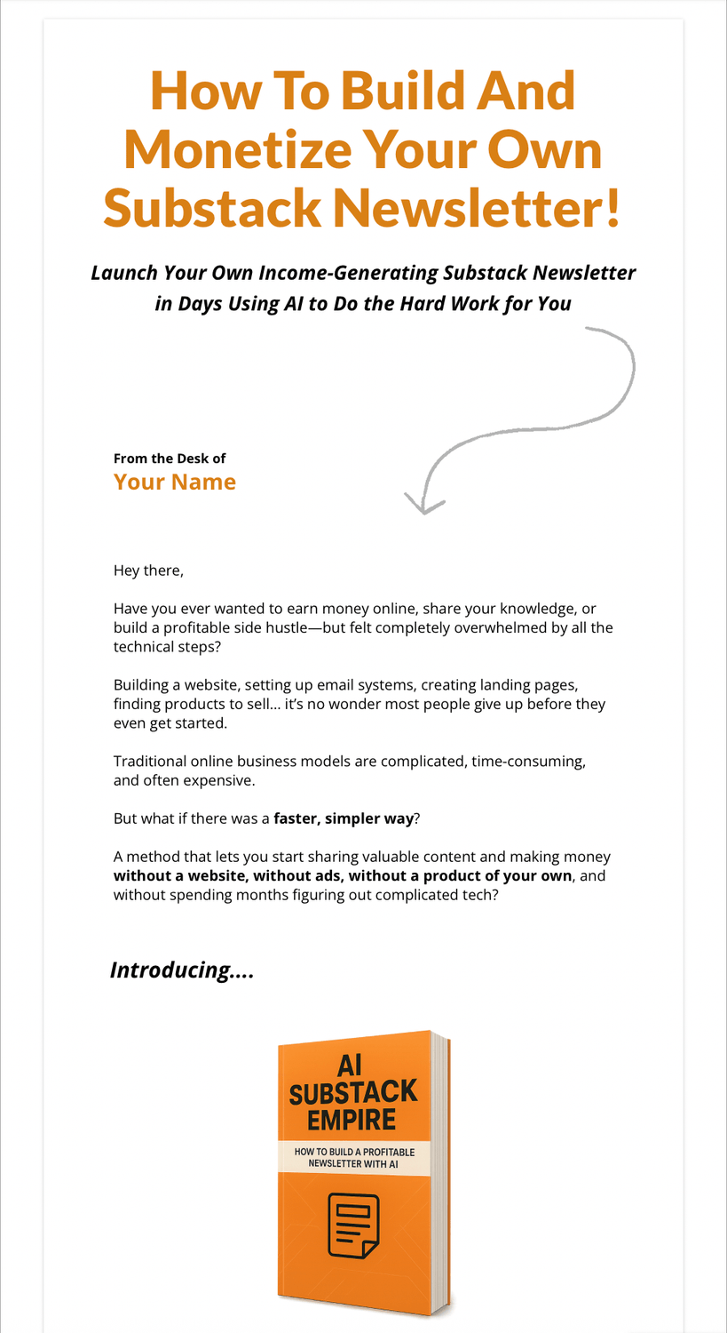 AI Substack Empire— a step-by-step system that shows you exactly how to launch a newsletter that earns money directly from your readers. With the combination of Substack’s built-in tools and the power of AI, you can: