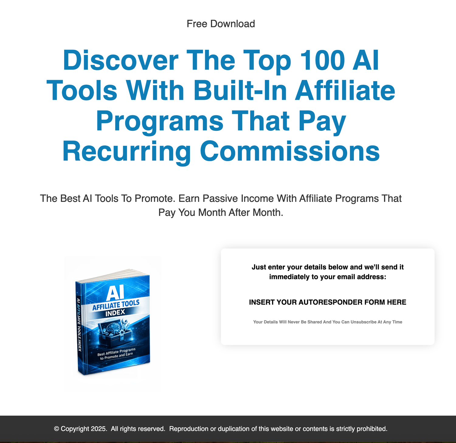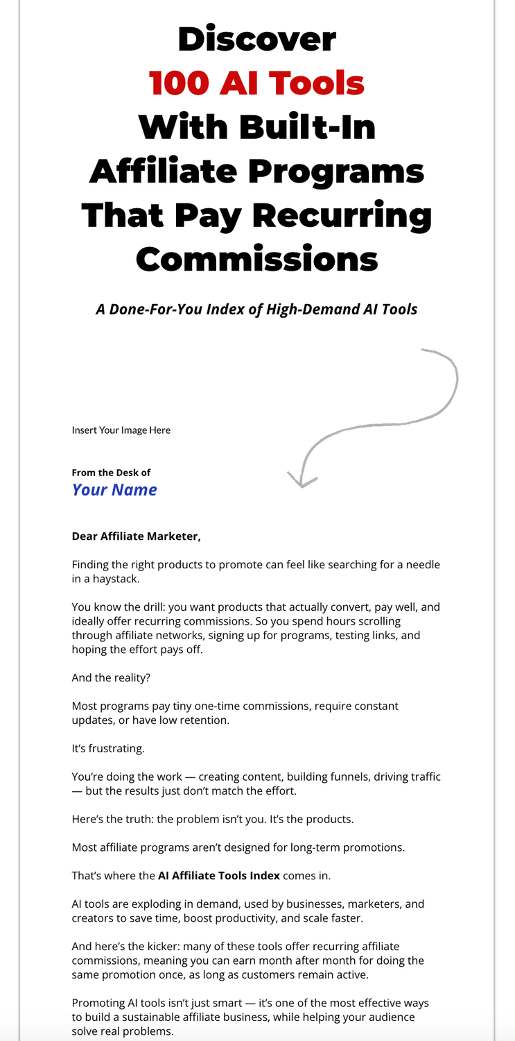 The AI Affiliate Tools Index gives you everything you need to start promoting immediately.