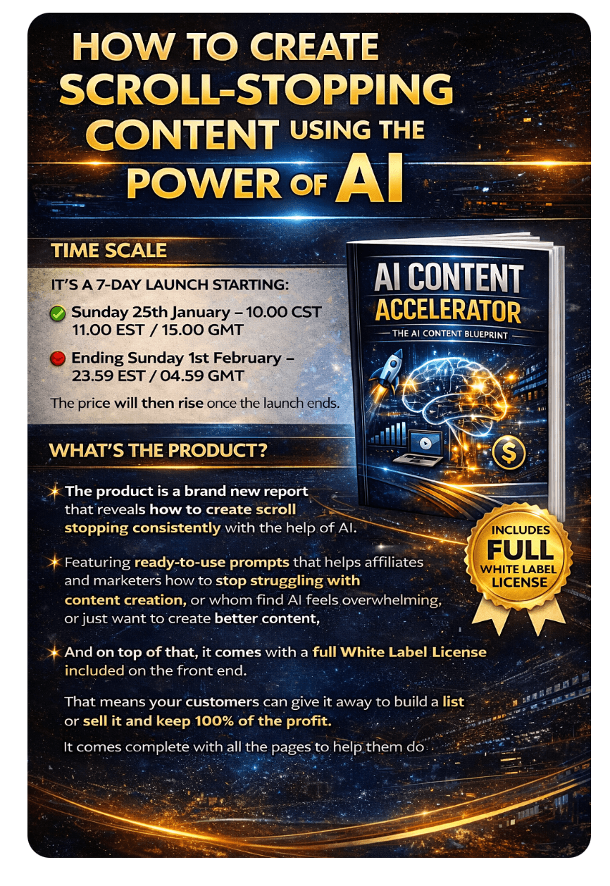 The product is a brand new report that reveals how to create scroll stopping consistently with the help of AI.
