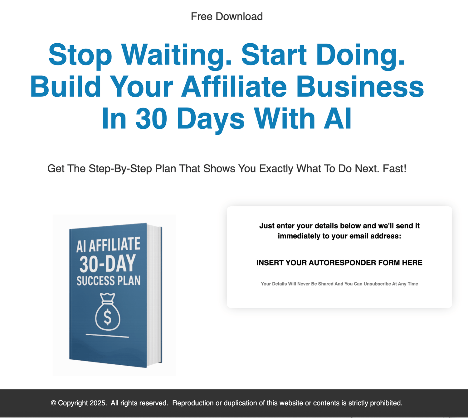 When you grab your copy of the AI Affiliate 30 Day Success Plan, you’ll get: